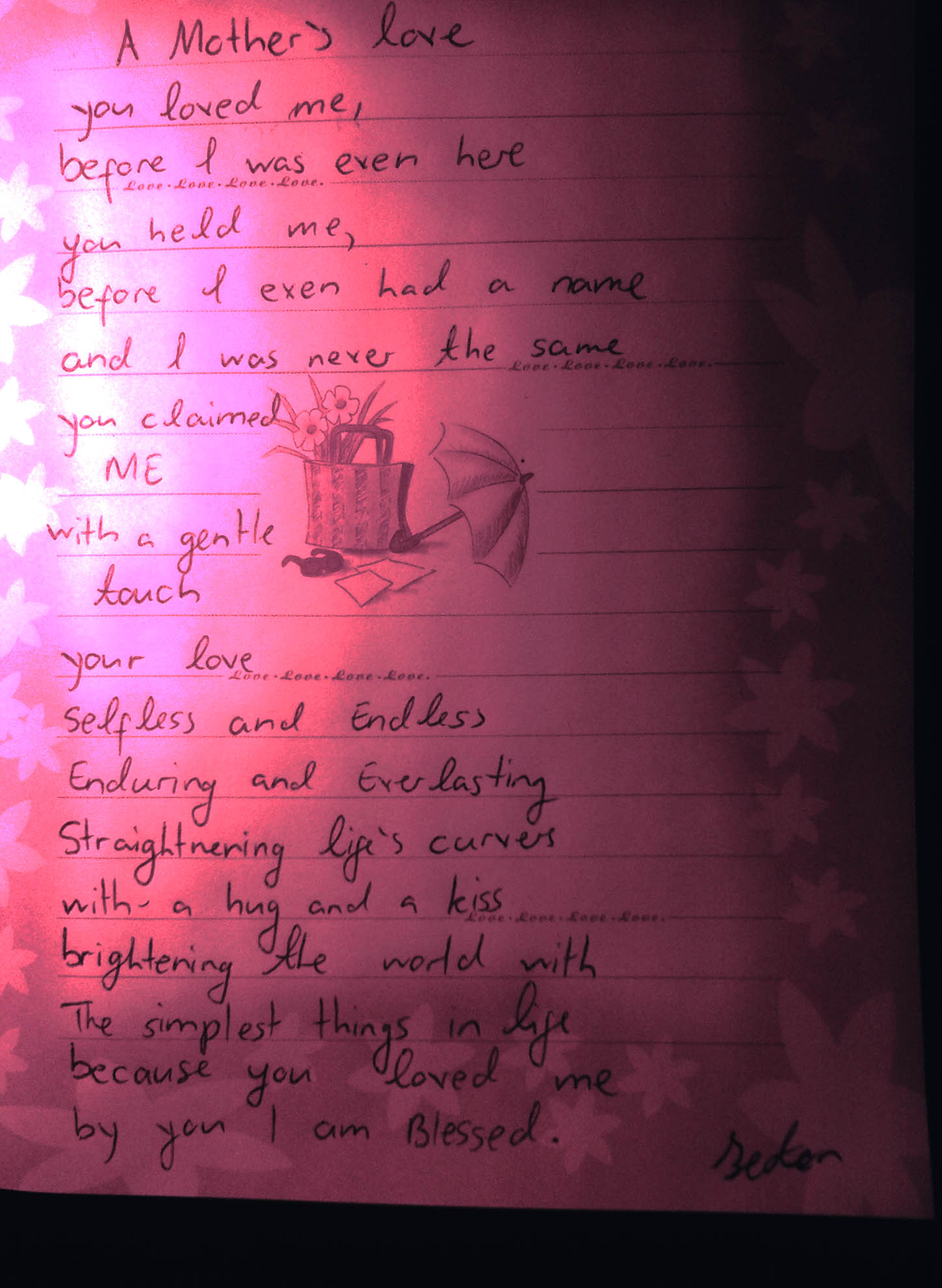 Ah so beautiful, your mum must be very proud of you. Yes, and I agree we mum’s really are superwomen!