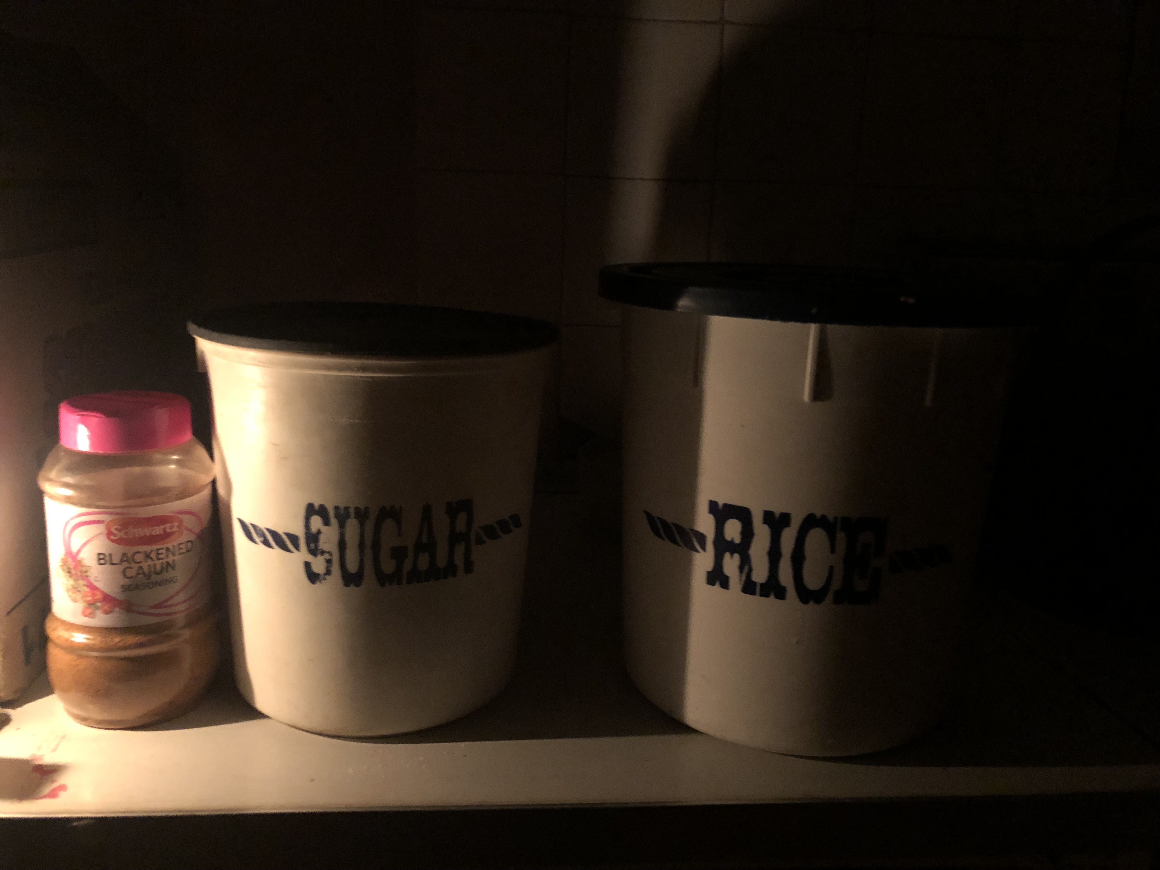 The upfu is in the jar labeled  rice and the  flour is the one labeled sugar its an easy system right, unless you are someone else