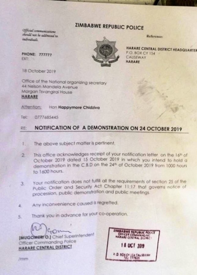 This image by Shepherd Tozvireva was from last wave of protests in August that had been planned by the main opposition which later got banned. One needs to file an application with the police before proceeding with a public mass action and the approval is not guaranteed. Another application for a demonstration by the opposition party that was set for the 24th of October to protest the raising cost of living has not been approved
