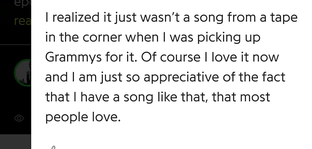 “…the song is always larger in the listener’s mind because in it they will attach imagery which is relative to their own personal experience, so it is your perception of what I am saying…”