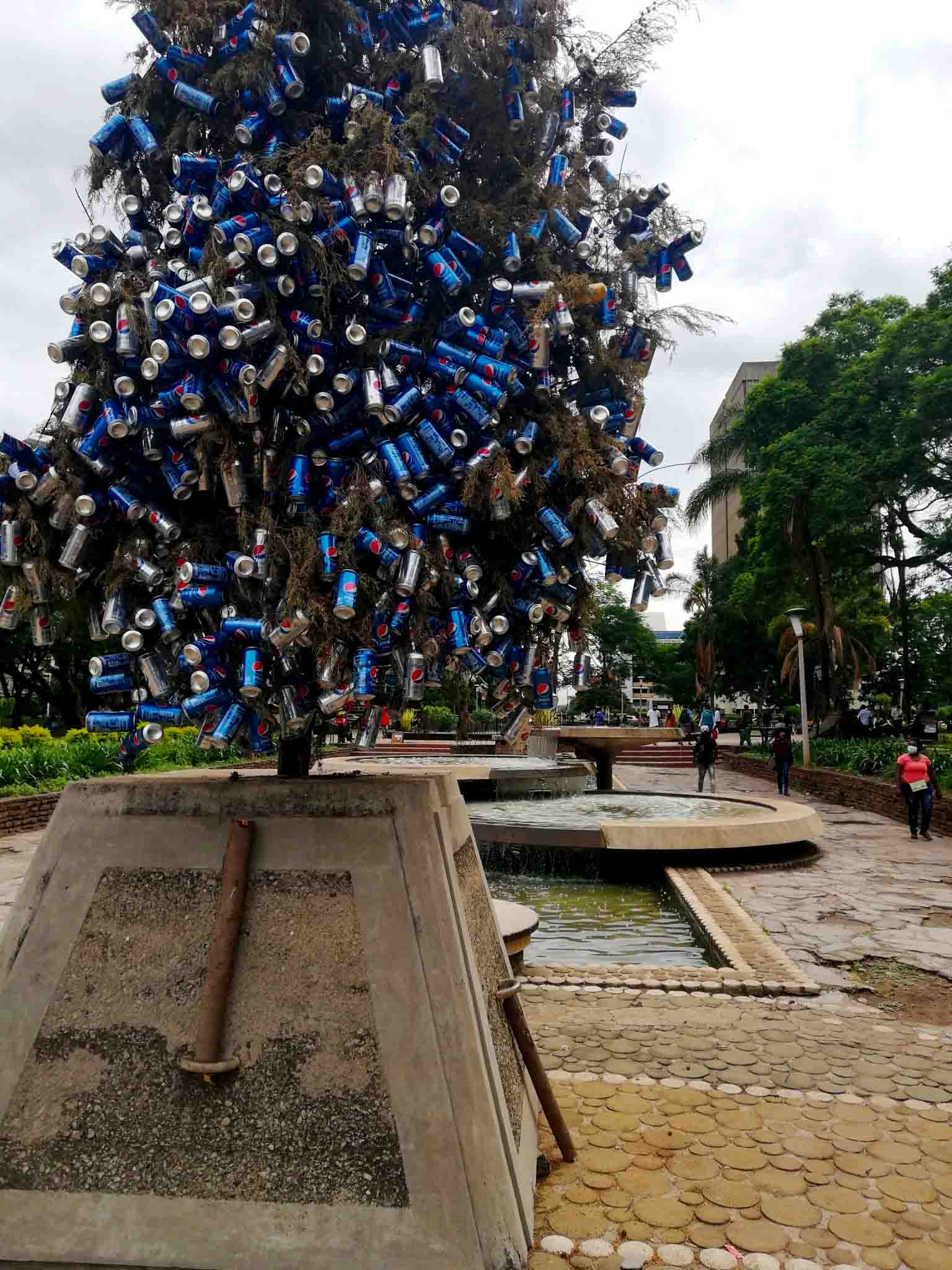 In my quest for the Christmas spirit, I found myself in Africa Unity Square which traditionally has the best Christmas décor in Harare, I was crushed the city fathers hadn’t felt particularly inclined to colour up the gardens with Christmas… Well almost… what they did have a tree which from afar looked like just another Christmas tree but upon closer inspection, things got curiously interesting.