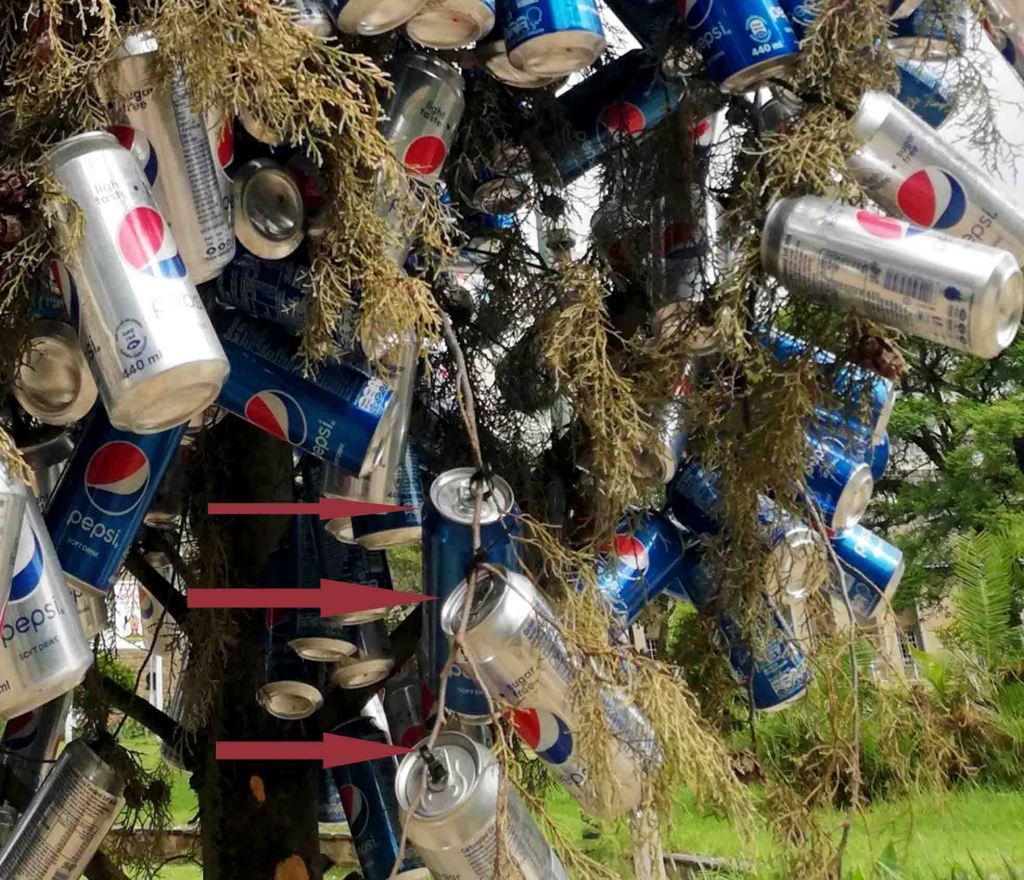 See the whole tree looked like it was sponsored by Pepsi.. Cans of Pepsi were strung up on the tree.