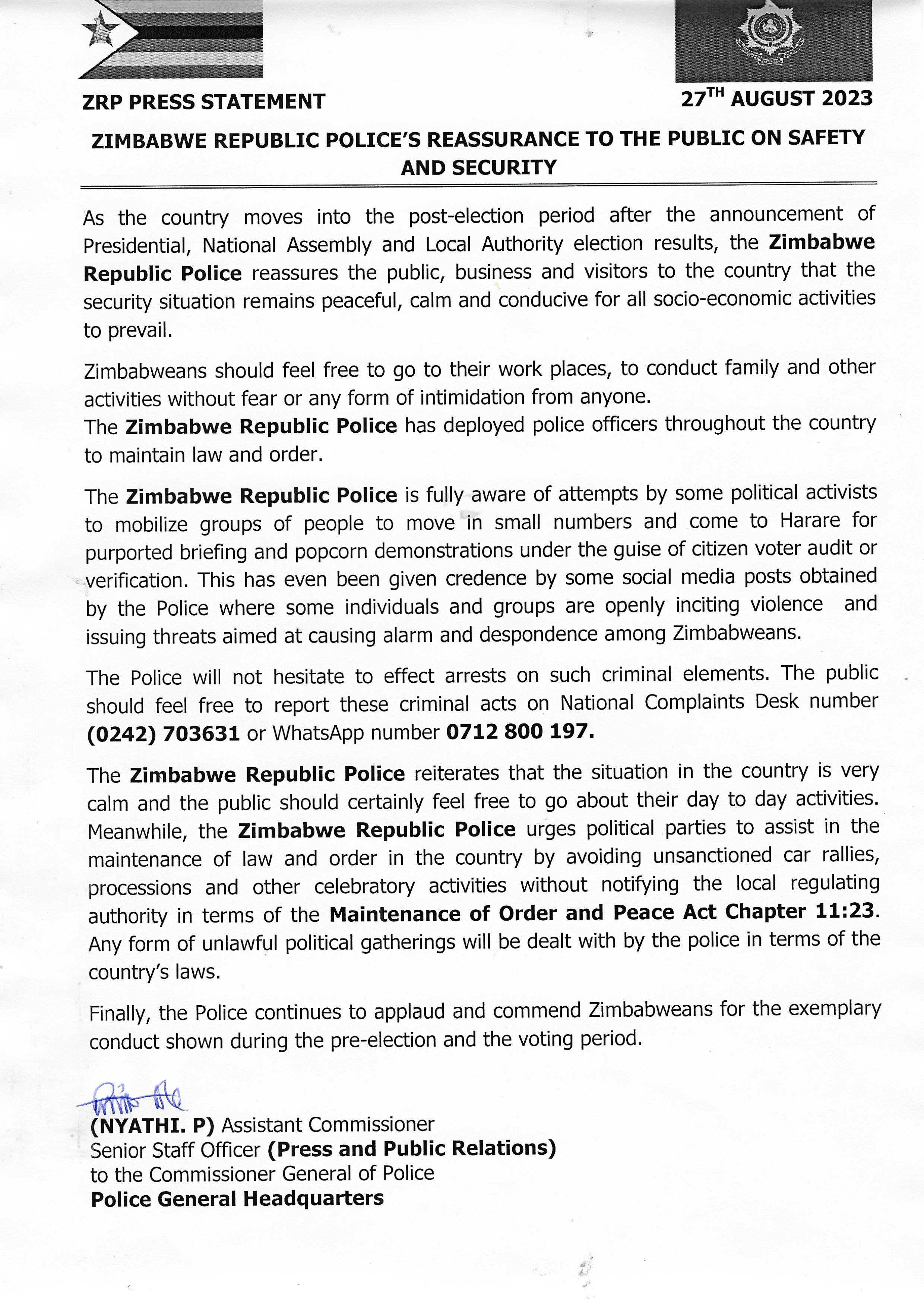 The AU, SADC and EU Observer Missions issued out preliminary reports to the effect that the elections fell short of the requirements of the Constitution of Zimbabwe, the Electoral Act, and the SADC Principles and Guidelines Governing Democratic Elections (2021).