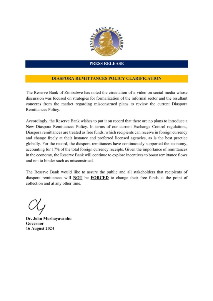 The latest shenanigan involved a video of the Deputy Governor of the Reserve Bank saying that they were looking into ways of holding onto remittances sent into the country as a way of controlling the informal market, it’s a good thing the Reserve Bank issued out a clarification that they are not doing anything of the sort and to disregard any rumours…