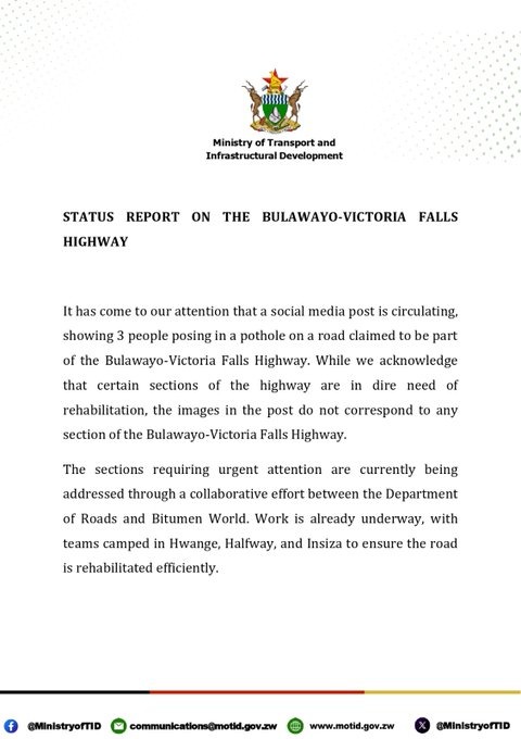 The Bulawayo – Victoria Falls route is another road which has had notorious potholes considering it’s a status road that leads to one of the country’s greatest natural wonder, The Victoria Falls.