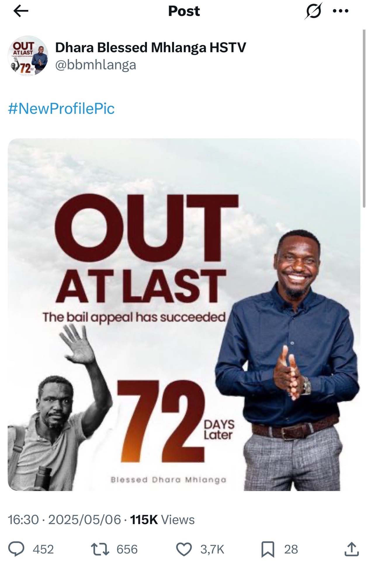 Meanwhile after 72 days of detention, a journalist who had been arrested on charges for incitement, after interviewing Comrade Bombshell a war veteran who had called for the resignation of the president, was granted bail… While people are happy that he is “free” the case exposes a selective application of the law that could be interpreted as muzzling free speech, especially in the wake of World Press Freedom Day…